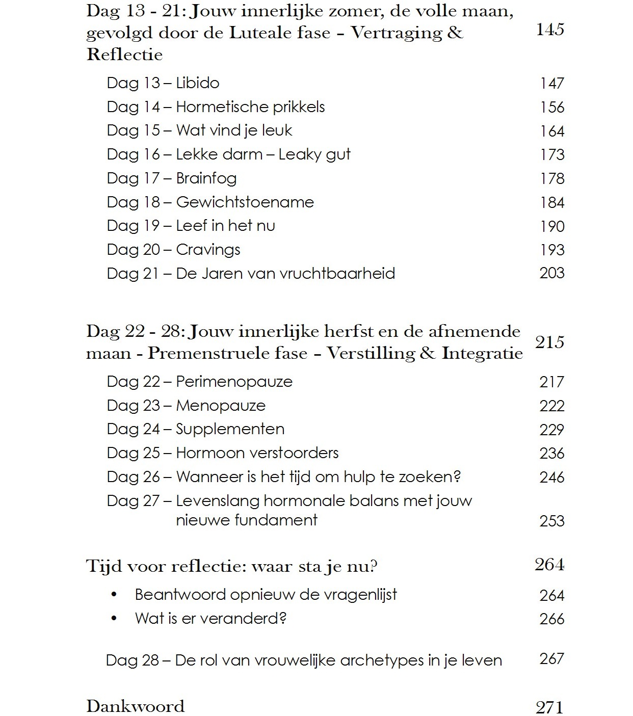 Dit boek is jouw gids. Voor elke levensfase. Praktisch, eerlijk en liefdevol. We gaan samen op reis naar meer balans, helderheid en verbinding met jezelf. Je lichaam vertelt je elke dag iets en het is zinvol dat je leert luisteren. En ik loop 28 dagen met je mee…